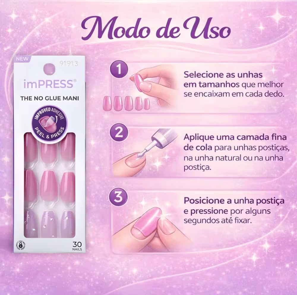 Modo de Uso/AplicaçãoPara aplicar as Unhas Postiças imPress Kiss Ny Moonlit IMM48, siga estes passos simples: