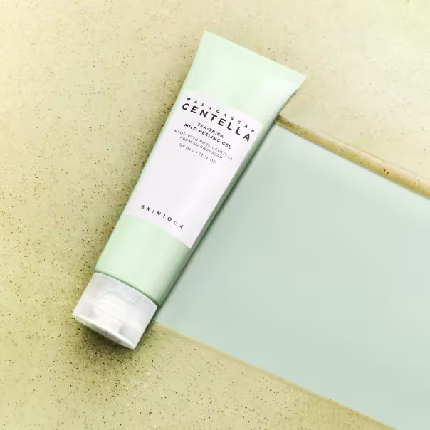 Revitalize sua pele com o Madagascar Centella Tea-Trica Mild Peeling Gel da Skin1004. Sua fórmula tipo gommage combina a ação física da celulose com ácidos e extratos botânicos para remover células mortas, cravos e excesso de sebo, ao mesmo tempo em que hidrata, acalma e fortalece a barreira cutânea.