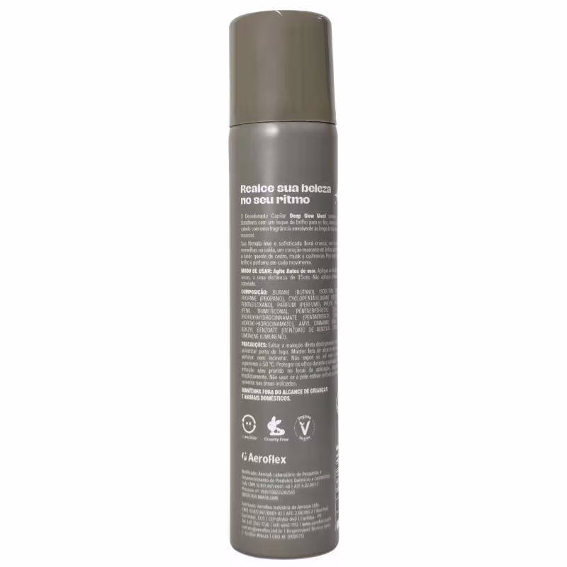 Finalidade: O Desodorante Capilar Deep Glow Mood combina perfumação duradoura com um toque de brilho para os fios, ideal para deixar seu cabelo com uma fragrância envolvente ao longo do dia, sem pesar, sem ressecar. Sua fórmula leve e sofisticada floral oriental, com notas de frutas vermelhas na saída, um coração marcante de Âmbar, Jasmim e Açafrão, e fundo quente de Cedro, Musk e Cashmeran. Para quem quer leveza, brilho e perfume em cada movimento.