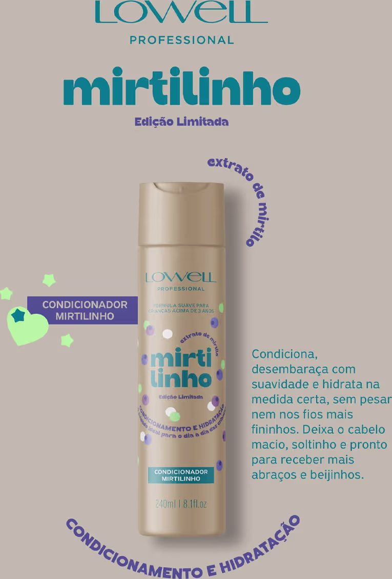 Lowell Mirtilinho - hidratação delicada e desembaraço fácil Desenvolvido para hidratar suavemente e... Ver mais ❯