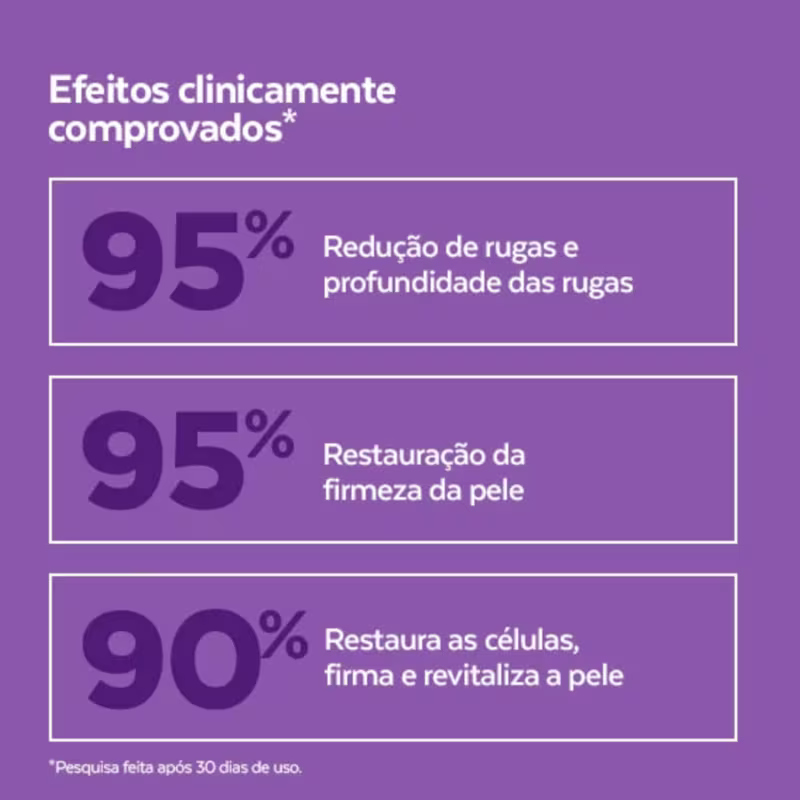 Sua ação ajuda a reduzir rugas e linhas de expressão, enquanto melhora visivelmente a textura da pele e promove um glow saudável. Com textura leve e rápida absorção, o sérum é ideal para uso diário, proporcionando resultados progressivos sem agredir a pele.