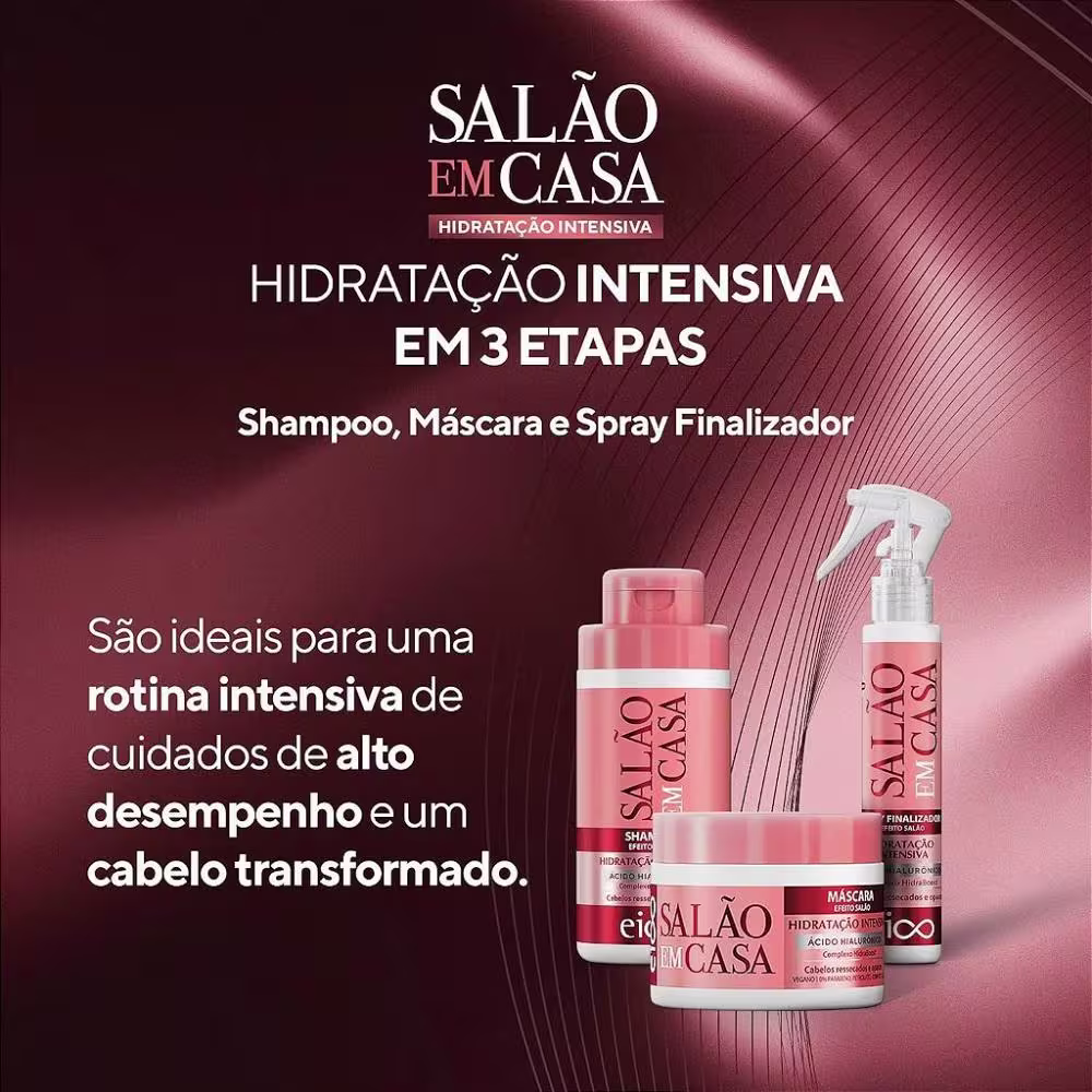 KIT EICO SALÃO EM CASA HIDRATAÇÃO INTENSA SHAMPOO 450ML+ SPRAY 120ML + MASCARA 270G