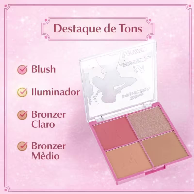 Blush: Aplique com o auxílio de um pincel nas maçãs do rosto, para um toque de cor e vitalidade.