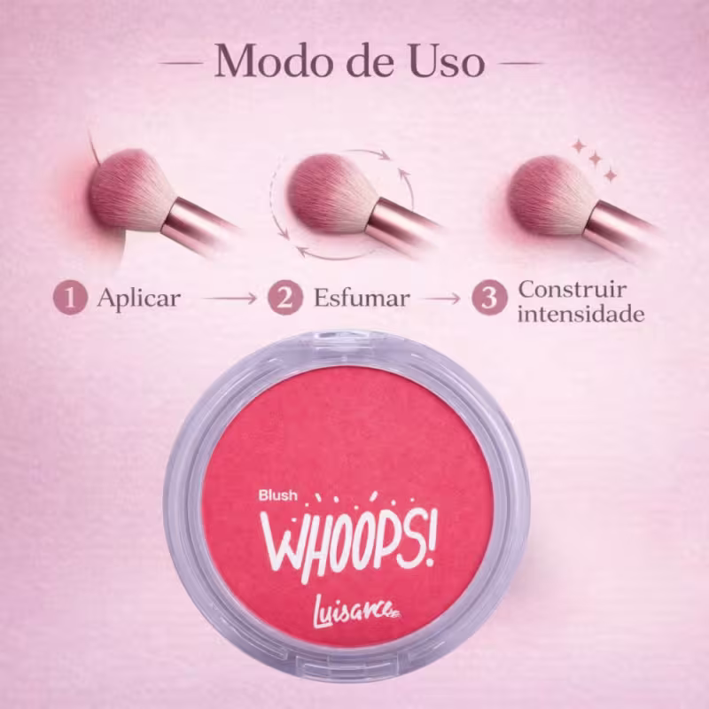 Para aplicar o Blush Compacto Luisance Whoops! Ballet, siga estes passos: