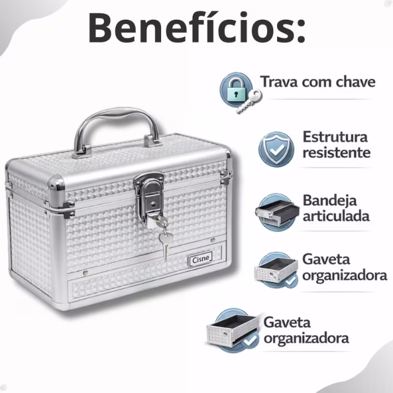 Não sei o CEPApresentamos a Maleta de Maquiagem Cisne Prata com 1 Bandeja e Gaveta Csn-a140 da marca RUBY'S, a solução definitiva para organizar e transportar suas maquiagens com elegância e praticidade. Se você busca um jeito de manter seus cosméticos protegidos, acessíveis e sempre à mão, esta maleta é a resposta. Ideal para maquiadores profissionais, amantes da beleza e qualquer pessoa que valorize a organização, ela oferece não só funcionalidade, mas também um toque de sofisticação ao seu espaço. Imagine ter todos os seus itens favoritos ao alcance, perfeitamente organizados e protegidos. Esta maleta não é apenas um acessório, é um investimento na sua rotina de beleza e bem-estar.