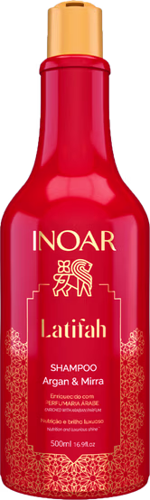 Inspirado nos rituais milenares de beleza árabe. O kit Shampoo e Condicionador INOAR Latifah combina ativos de alta performance com a tradição milenar do Oriente. O Óleo de Argan, puro ouro marroquino, nutre profundamente e devolve a maciez, se une à preciosa Mirra, símbolo de brilho luxuoso e sofisticação. O shampoo limpa gentilmente sem ressecar os fios e repara a fibra capilar e o condicionador alinha os fios sem pesar e sela as cutículas.
