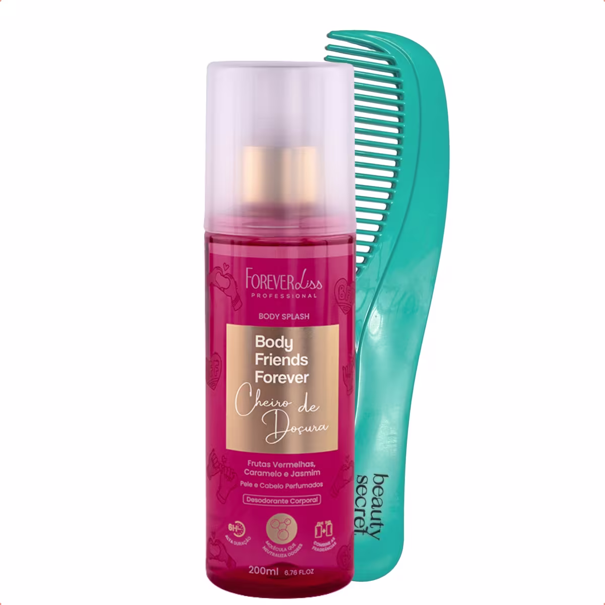 Kit Body Splash Forever Liss Doçura 200ml e Pente Beauty