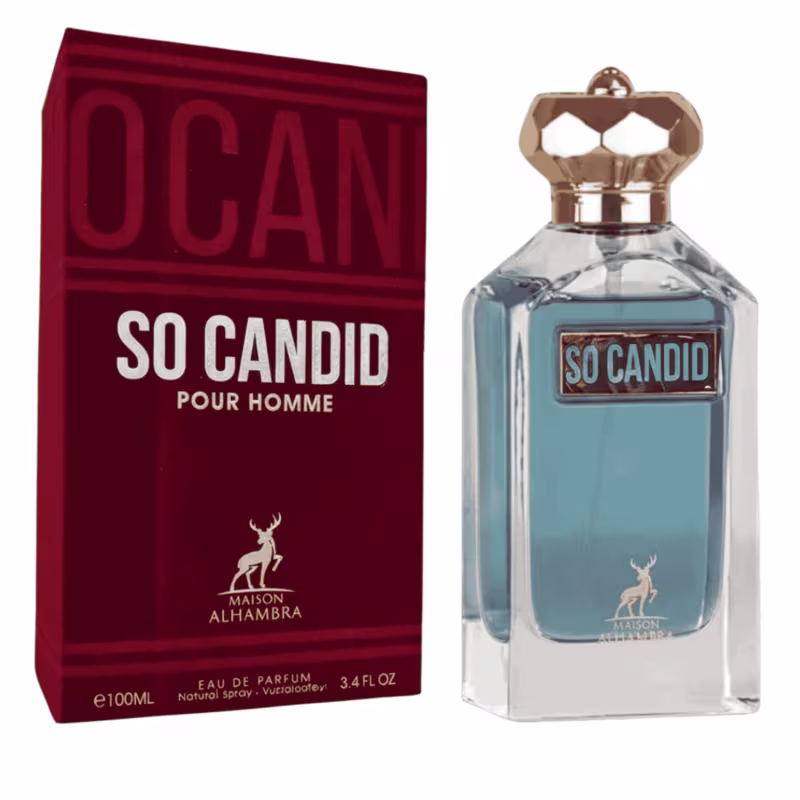 Não sei o CEPCandid Pour Homme, de Maison Alhambra, é um oriental fougère masculino lançado em 2024 — moderno, quente e marcante. A saída traz mandarina com sálvia esclaréia, abrindo fresco e aromático. No coração, caramelo e fava tonka entregam um lado adocicado, cremoso e envolvente. Para finalizar, o vetiver sustenta a base com um toque verde e elegante. Perfeito para noites e dias mais frescos, com presença na medida certa.