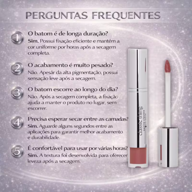O Batom Líquido Ruby Rose Blow Classic Thing é versátil e ideal para diversas situações. Perfeito para o uso diário, adicionando um toque de cor e confiança ao seu visual de trabalho ou estudo. Excelente para eventos sociais, festas e encontros, onde a durabilidade e a intensidade da cor são essenciais para um look marcante. Também é uma ótima opção para complementar maquiagens artísticas ou temáticas, permitindo a criação de visuais ousados e criativos. Ideal para um encontro romântico, uma reunião importante ou uma noite especial com amigos.