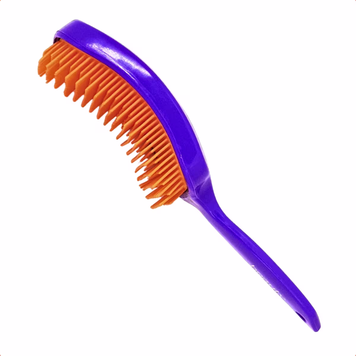 Descrição Técnica e BenefíciosEscova Raquete Roxa com Cerdas Laranja BYS:Cerdas flexíveis e macias que deslizam suavemente pelos fios sem puxar ou quebrar
