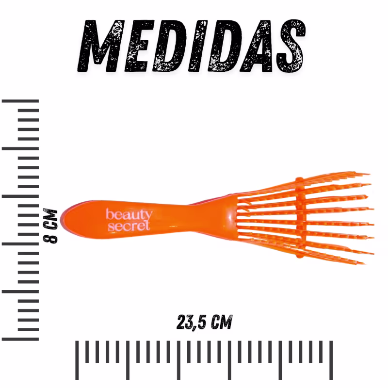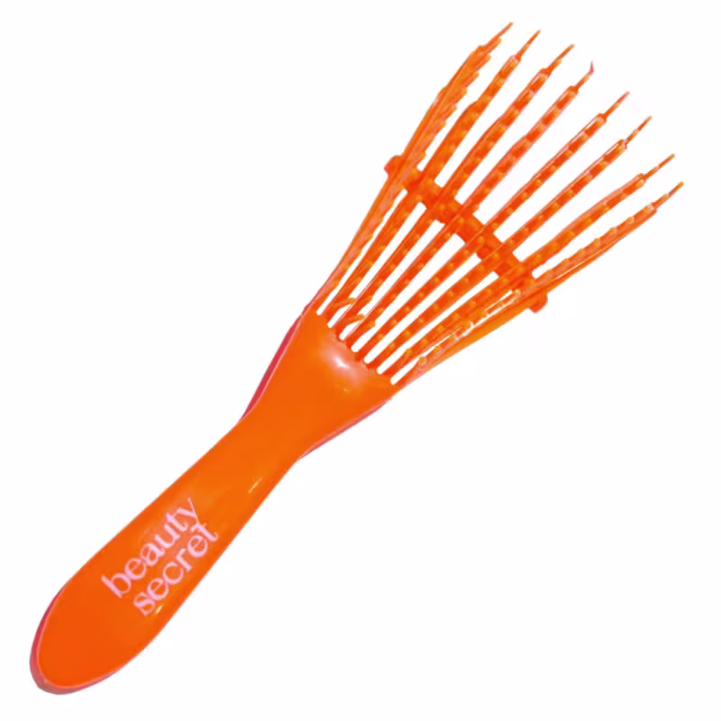 Escova Polvo Laranja: Flexível, ergonômica e ventilada, proporciona um desembaraço mais rápido e suave. Se adapta ao formato do couro cabeludo, minimizando a quebra dos fios durante o uso.