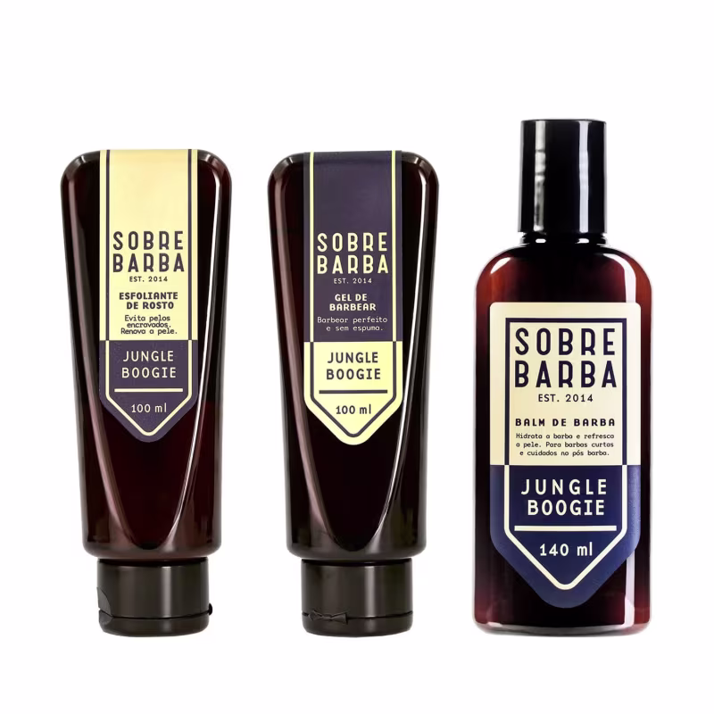 Trio Sobrebarba - Esfoliante, Gel de Barbear e Balm de Barba - Jungle Boogie Ver mais ❯