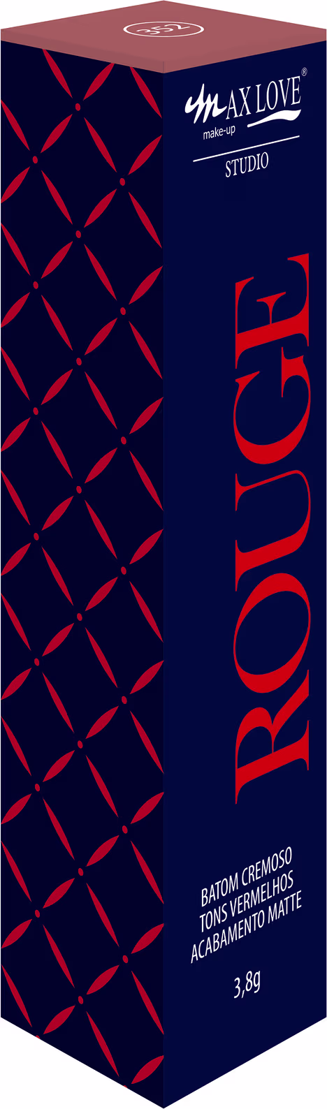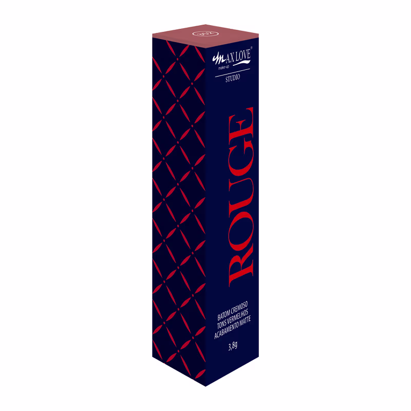 Batom com acabamento matte. Max Love Rouge Matte tem textura cremosa que facilita a aplicação e tem excelente cobertura.