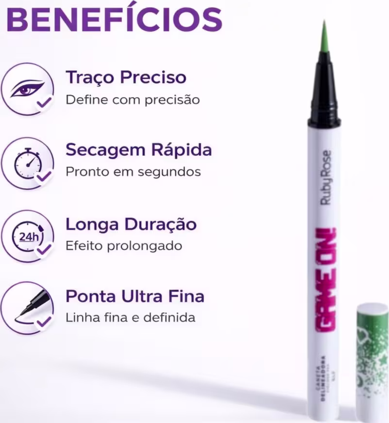 Perfeita para usar no dia a dia, em eventos sociais, festas, baladas e em qualquer ocasião em que você queira realçar o seu olhar. Ideal para criar looks desde os mais básicos até os mais elaborados, como o clássico delineado gatinho ou um visual mais moderno e gráfico. Seja para um encontro casual ou uma festa sofisticada, a Caneta Delineadora Ruby Rose Game On é a escolha certa para um visual impecável.