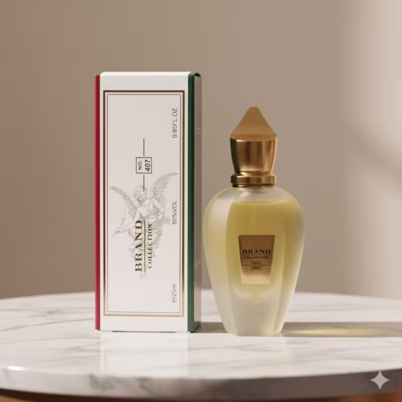 O Brand Collection 407 combina o calor do mel com a intensidade do tabaco e um toque cítrico aromático que traz equilíbrio perfeito. O resultado é um aroma poderoso, imponente e profundamente sedutor, que evolui lindamente na pele e deixa rastro de perfumaria fina.
