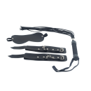 O kit traz 3 itens essenciais: um par de algemas de pulso para contenção, um chicote para disciplinar os mais desobedientes e uma máscara com alça elástica confortável para aumentar a tensão e provocar ainda mais o(a) crush.