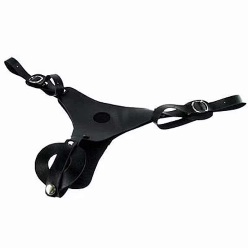 A cinta é confeccionada em courvin com recortes arredondados e possui suporte para uso simultâneo de dois pênis realísticos de diversos tamanhos à sua escolha.