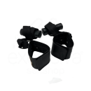Com algemas feitas em couro ecológico, detalhes exclusivos em rebites, mosquetão que interliga os cordões todos trabalhados em nylon e fivelas ajustáveis!