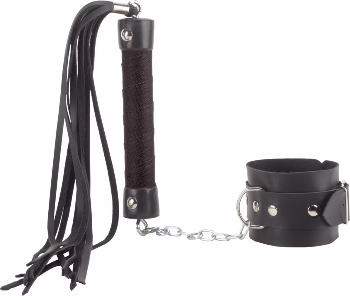 O bracelete em couro sintético com detalhes em rebites e fivela ajustável proporciona encaixe seguro e confortável, permitindo que o chicote faça parte da dinâmica de poder de forma prática e envolvente. Cada movimento vira um convite à provocação, à obediência e à entrega.