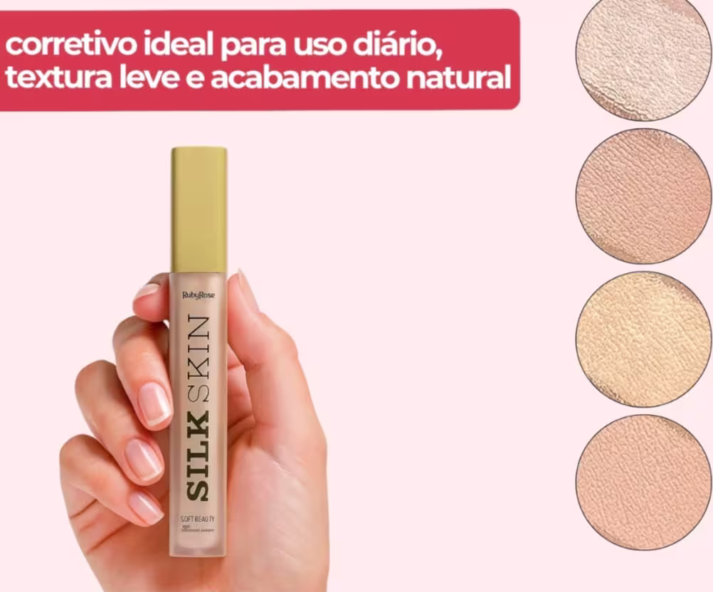 Realce sua beleza natural com o Corretivo Líquido Soft Beauty Silk Skin Ruby Rose e conquiste um olhar descansado e uma pele impecável com leveza e sofisticação!