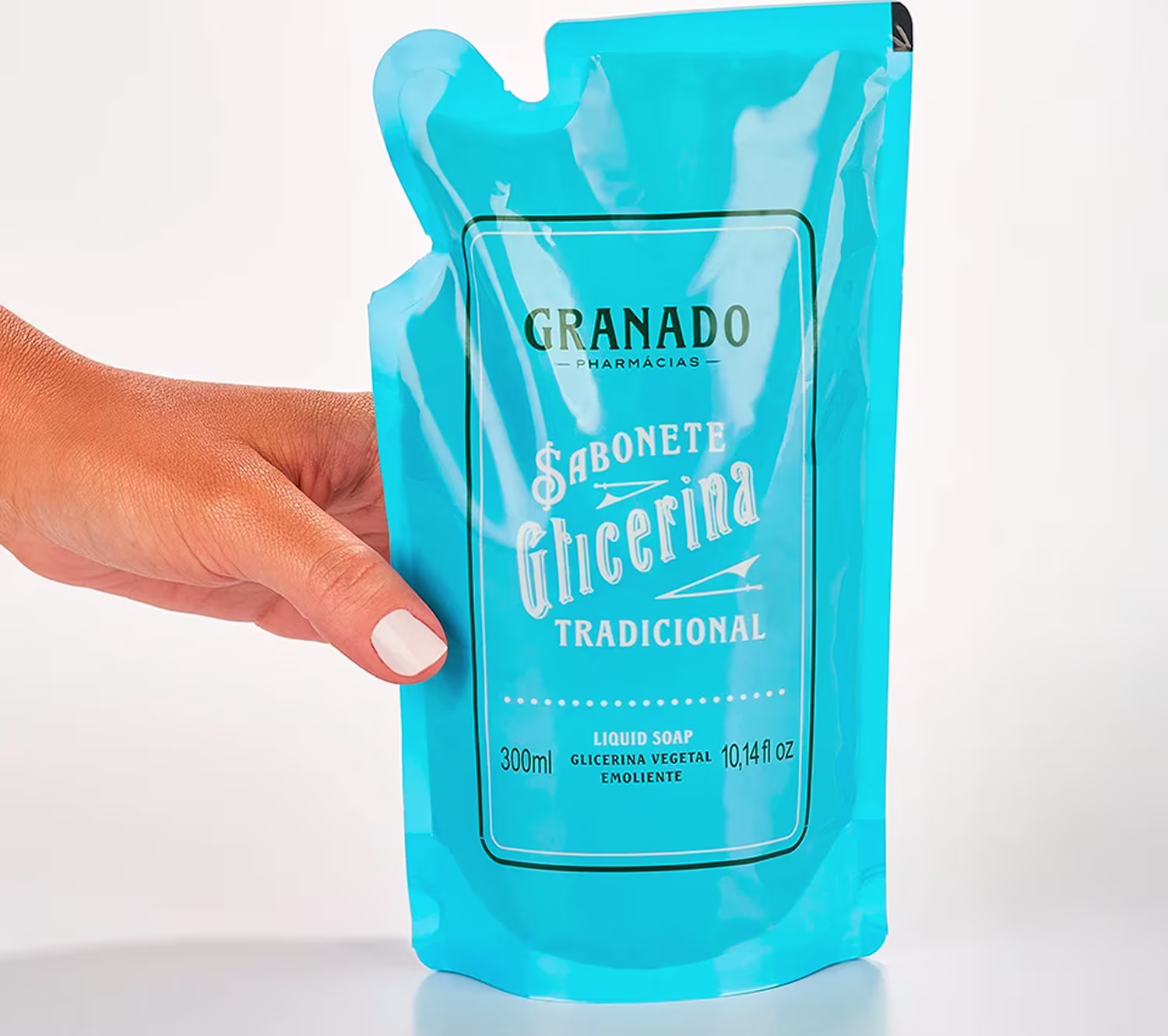 Não sei o CEPO Refil Sabonete Líquido de Glicerina Tradicional Granado 300ml traz a fórmula clássica que atravessa gerações, proporcionando limpeza suave e eficaz para o corpo e as mãos. Desenvolvido com glicerina vegetal e pH compatível com o da pele, promove higienização delicada sem ressecar, mantendo a maciez e o equilíbrio natural da pele.