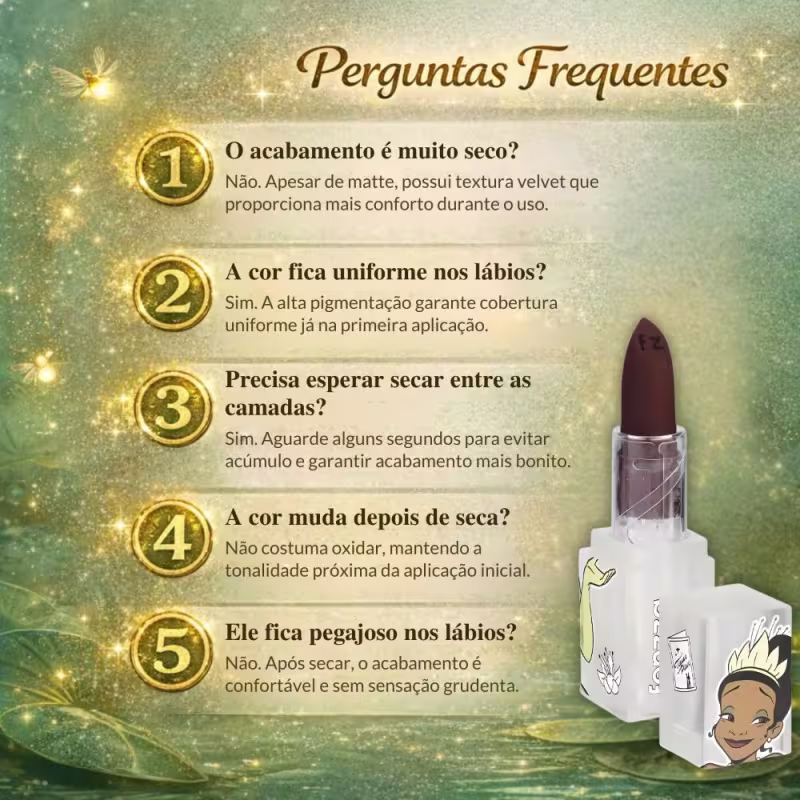 Não sei o CEPDescubra o Batom Matte Velvet Fenzza Disney Princesa Dis112, uma joia da Fenzza Makeup que une a magia da Disney à beleza que você merece. Imagine lábios com cor intensa e um toque aveludado. Este batom não só realça sua beleza, mas também te transporta para um mundo de sonhos, ideal para quem busca um toque de magia e sofisticação no dia a dia.