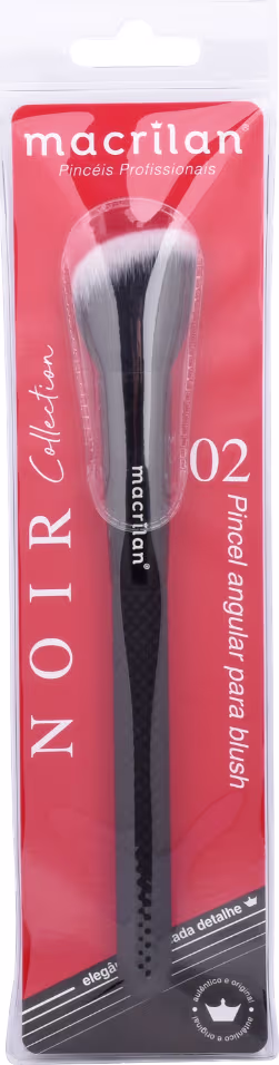 Pincel Macrilan, uma empresa brasileira, especialmente desenvolvido com cerdas sintéticas e macias, ideal para a aplicação de blush, contorno e iluminador. Seu formato angular facilita à aplicação e oferece um acabamento suave e preciso.