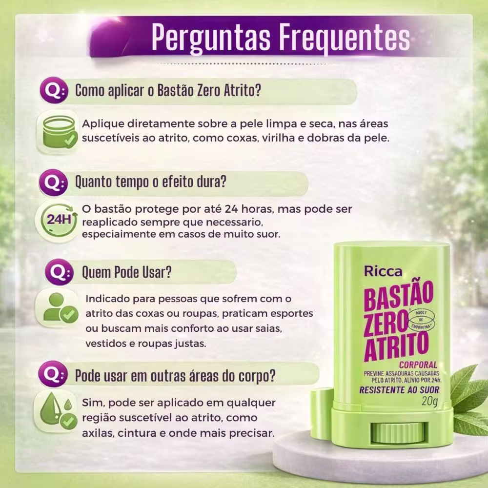 O Bastão Zero Atrito Ricca Corporal é perfeito para diversas situações, incluindo: