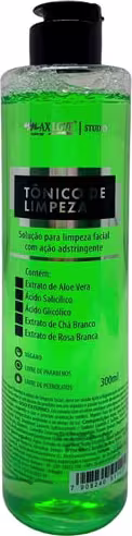 O Tônico de Limpeza Facial da Max Love possui ação de limpeza e adstringe a pele. Contém Extrato de Aloe Vera, Ácido Salicílico, Ácido Glicólico, Extrato de Chá Branco e Extrato de Rosa Branca. Possui ativos que auxiliam no tratamento e saúde da pele do rosto.