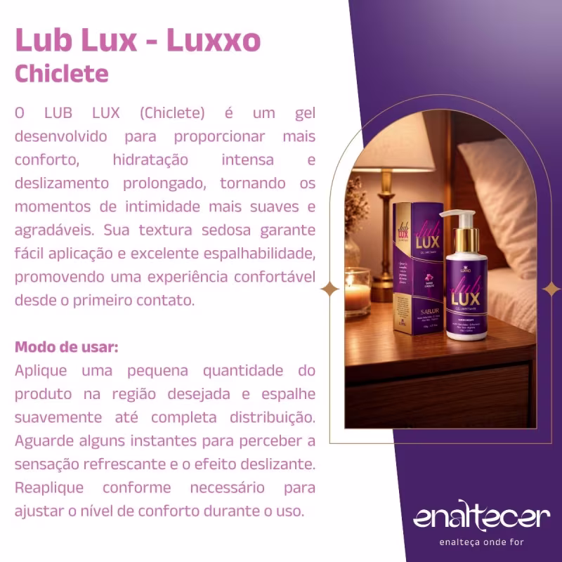 O LUB LUX (Chiclete) é um gel desenvolvido para proporcionar mais conforto, hidratação intensa e deslizamento prolongado, tornando os momentos de intimidade mais suaves e agradáveis. Sua textura sedosa garante fácil aplicação e excelente espalhabilidade, promovendo uma experiência confortável desde o primeiro contato.
