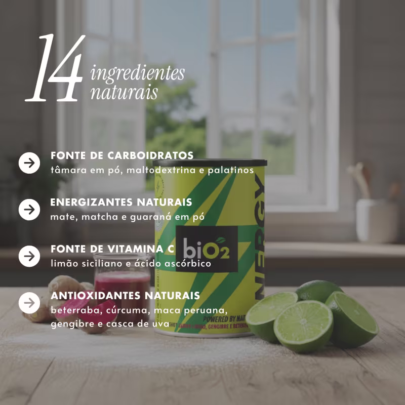 Pré Treino Energy Shot Limão, Gengibre e Beterraba 420g - biO2 Ver mais ❯