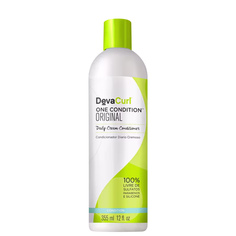 Deva Curl One Condition - Condicionador 355ml: Condicionador diário indicado para cabelos cacheados, ondulados e danificados. Hidrata e neutraliza o pH enquanto restaura intensamente os fios. Condiciona, define e mantém os cachos brilhantes e maleáveis.