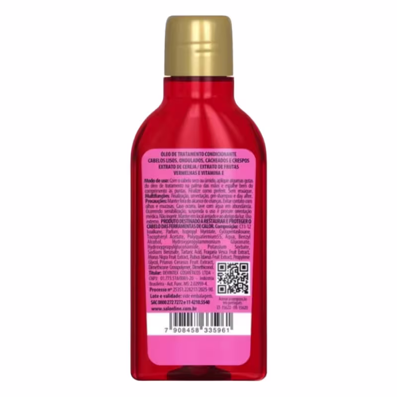Não sei o CEPDescubra o Óleo De Tratamento Capilar Salon Line Multy Cereja 50ml, um produto essencial da renomada marca SALON LINE. Desenvolvido para o cuidado dos seus cabelos, este óleo de tratamento oferece uma experiência única com a fragrância e os benefícios da cereja, em uma embalagem prática de 50ml. Ideal para quem busca nutrição, brilho e maciez, este óleo capilar é perfeito para todos os tipos de cabelo, proporcionando resultados visíveis desde a primeira aplicação.