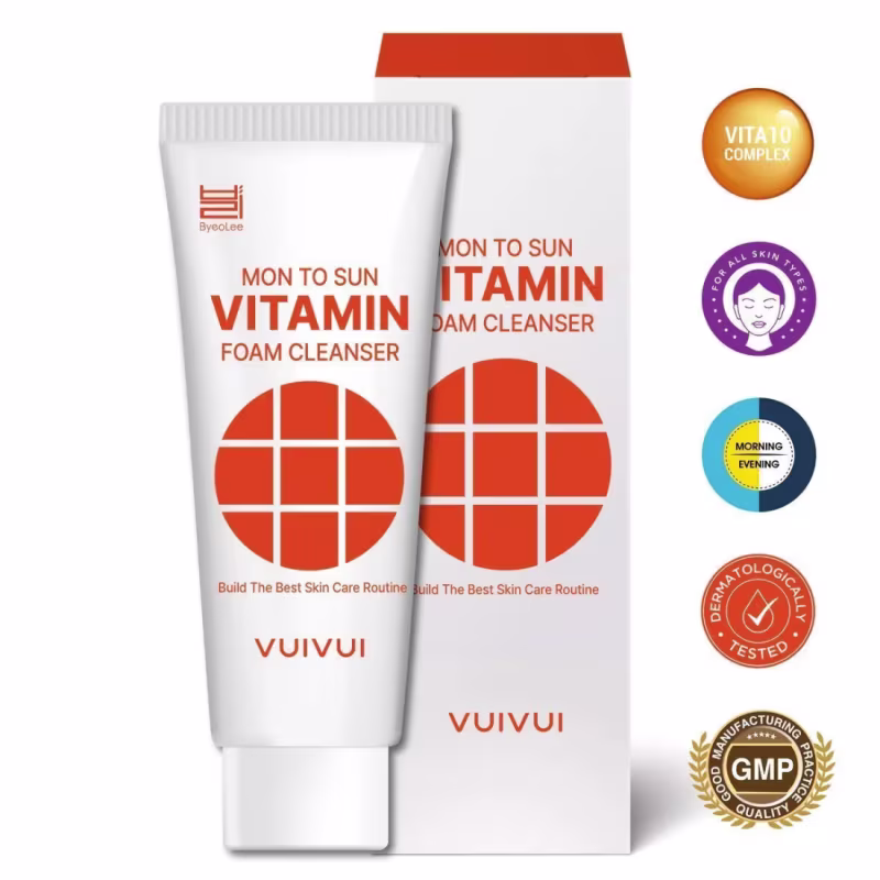 Não sei o CEPO Mon To Sun Vitamin Foam Cleanser em tubo de 100 g é um sabonete facial em espuma enriquecido com um complexo de 10 vitaminas essenciais, formulado para oferecer uma limpeza suave e eficaz, ao mesmo tempo em que nutre e ativa a pele. Entre as vitaminas presentes estão A (combate rugas), B1 (acalma irritações), B5 (hidrata e confere viço), B6 (ajuda em condições sensíveis), B9 (estimula a síntese de colágeno), B12 (melhora a eczema), C (antioxidante, clareia e induz colágeno), E (hidrata e antioxidante), F (melhora circulação e anti‑idade) e H (previne acne e regula oleosidade) smallworld.sg+10smallworld.sg+10smallworld.sg+10.