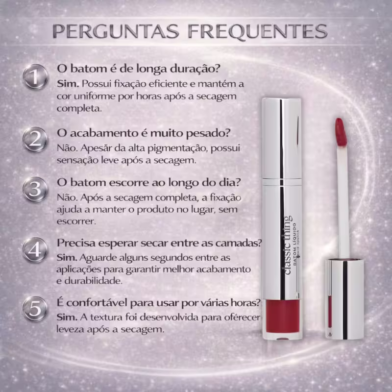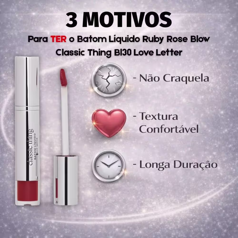 O Batom Líquido Ruby Rose Blow Classic Thing é versátil e ideal para diversas situações. Perfeito para o uso diário, adicionando um toque de cor e confiança ao seu visual de trabalho ou estudo. Excelente para eventos sociais, festas e encontros, onde a durabilidade e a intensidade da cor são essenciais para um look marcante. Também é uma ótima opção para complementar maquiagens artísticas ou temáticas, permitindo a criação de visuais ousados e criativos. Ideal para um encontro romântico, uma reunião importante ou uma noite especial com amigos.