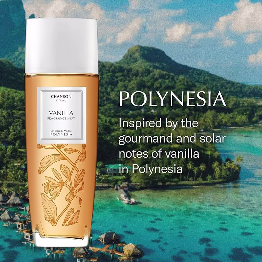 Escolha o Chanson D'Eau Vanilla Polynesia Body Splash 75ml para desfrutar de uma baunilha polinésia cremosa, doce e viciante com a leveza que só um body splash oferece. É a fragrância ideal para mulheres que buscam conforto, frescor e um aroma delicioso que abraça a pele com elegância acessível e alegria tropical.