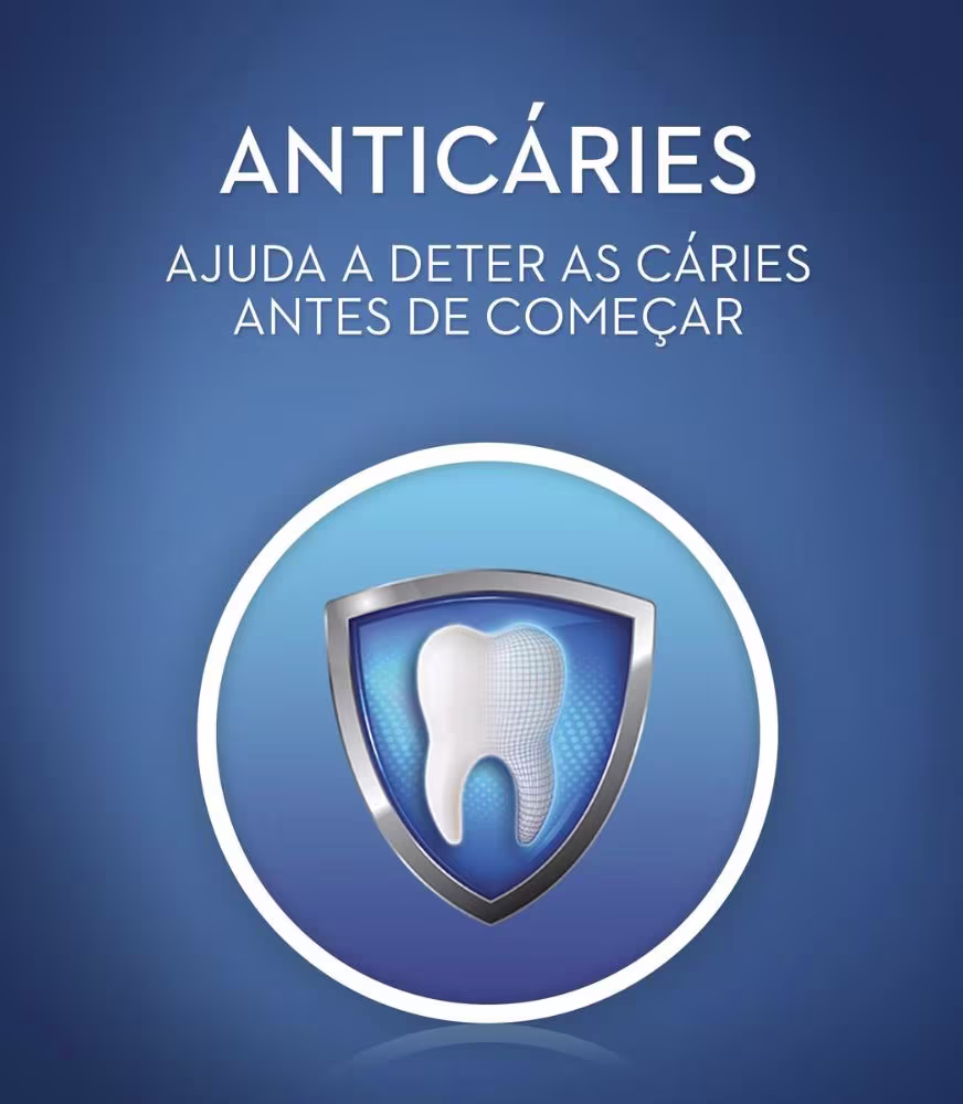 Oral-B Pro-Saúde Escudo Anti-Açúcar tem um componente antibacteriano que atua contra as bactérias prevenindo de forma temporária as cáries e favorecendo o ciclo da proteção dental.