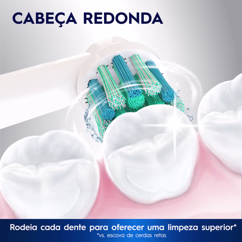 • Cabeça redonda remove 100% mais placa* *vs. escova de cerdas retas.