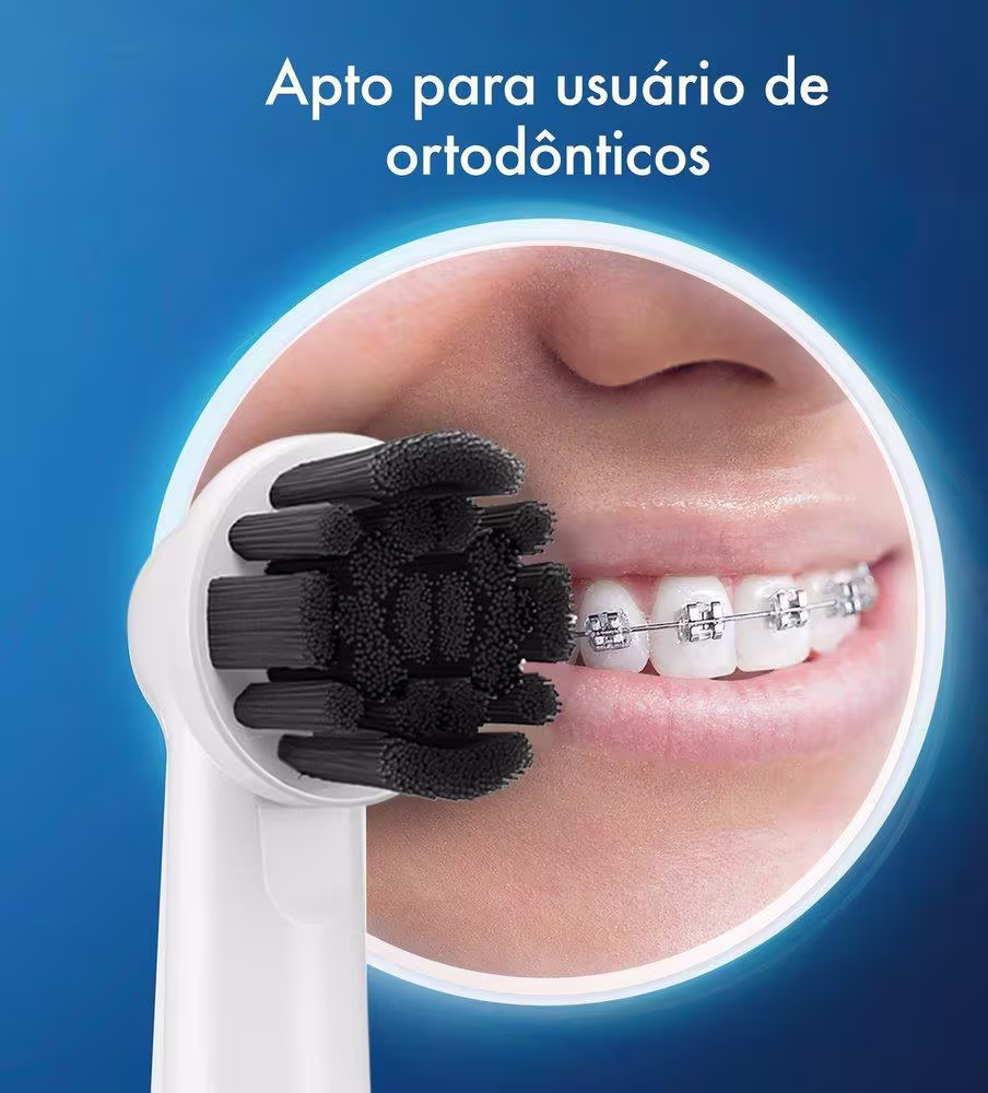 O refil da escova de dentes elétrica Oral-B Advance Charcoal apresenta cerdas com infusão de carvão que ajudam a branquear* os dentes enquanto removem até 100% mais placa do que uma escova de dentes manual. como se faz? Sua cabeça redonda envolve cada dente, permitindo uma limpeza mais profunda e graças ao seu tamanho compacto remove manchas mesmo em locais de difícil acesso. O refil da escova de dentes elétrica Oral-B é adequado para usuários com ortodontia. Compatível com todas as escovas de dentes elétricas Oral-B, exceto iO.