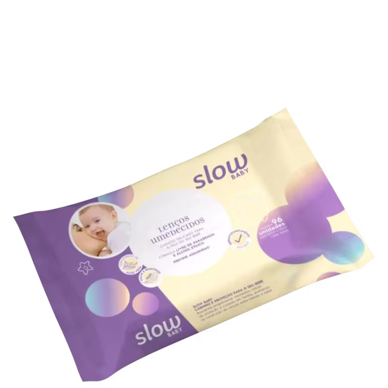 Lenços Umedecidos Com Fórmula Suave, Linha Slow Baby, Lanossi. Os Lenços Umedecidos Slow Baby ajudam a prevenir assaduras, são resistentes e auxiliam para uma limpeza suave a qualquer momento do dia ou da noite. Sua fórmula é livre de álcool etílico e parabenos, enriquecida com Aloe Vera, promovendo a hidratação e o cuidado delicado com a pele do seu bebê. Com extrato de Aloe Vera e Dermatologicamente testado os lenços Slow Baby são suaves e resistentes! Além disso previne assaduras e contém uma fórmula livre de parabenos e álcool etílico. Cuidado delicado para a pele do seu bebê!