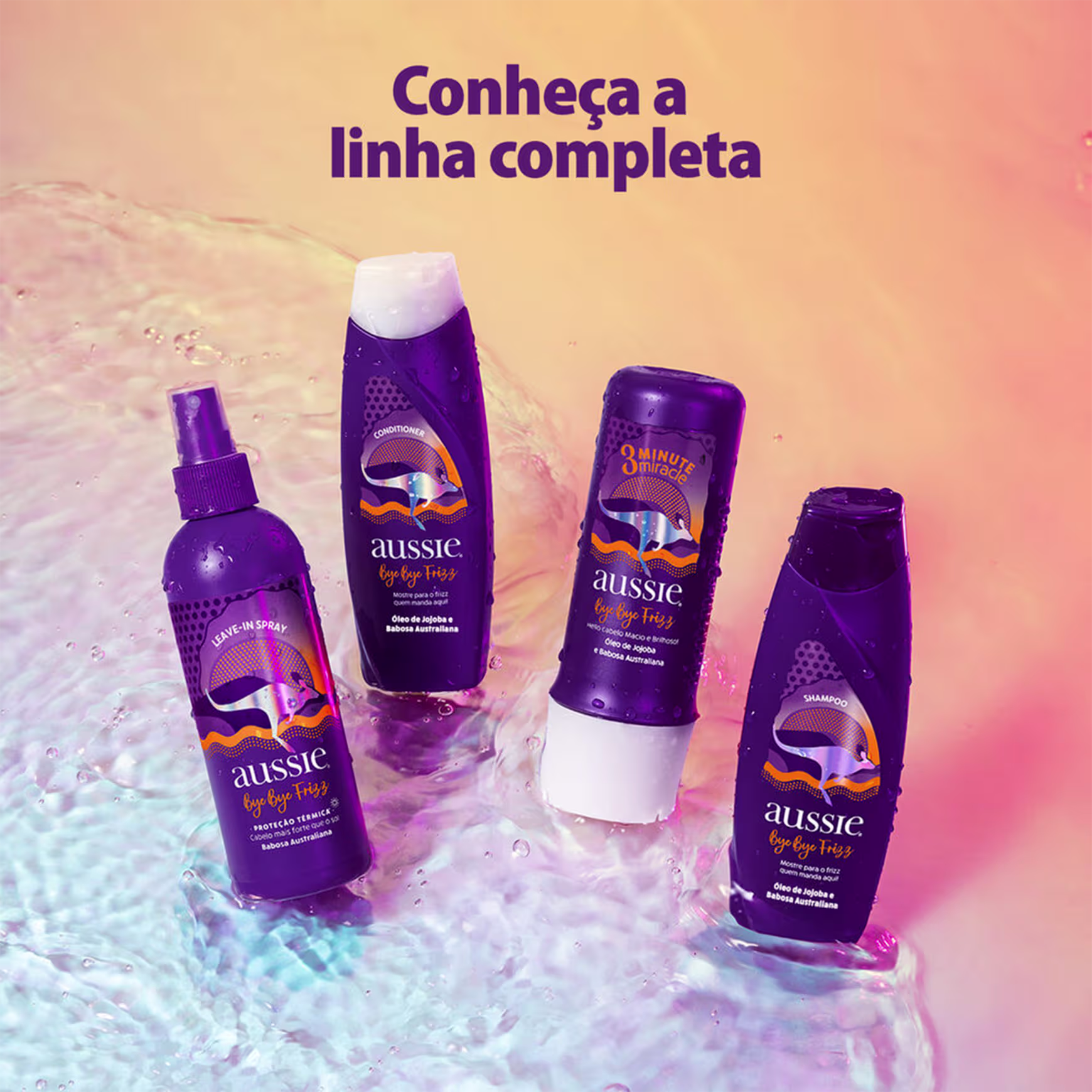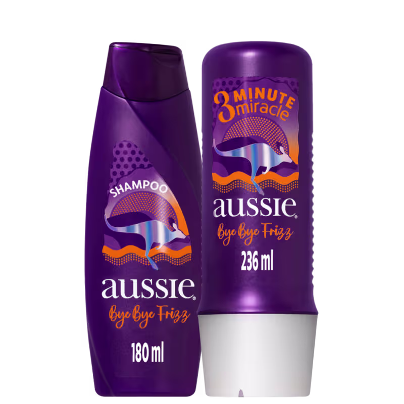 O kit Aussie Bye Bye Frizz dá uma aula de disciplina nos seus fios mais rebeldes, transformando o frizz em um cabelo cheio de brilho e maciez. Ele ainda deixa o cabelo com aquele cheirinho de Aussie que todo mundo ama.
