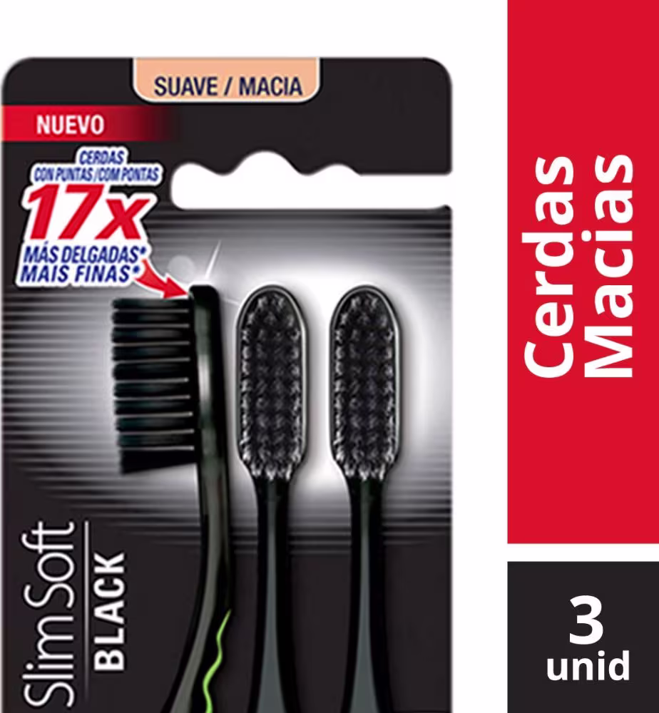 A Escova de dente Colgate Slim Soft Black foi desenvolvida com a tecnologia de ponta da Colgate. Por meio de cerdas macias infundidas em carvão com pontas ultra finas, a escova promove uma limpeza profunda e delicada.