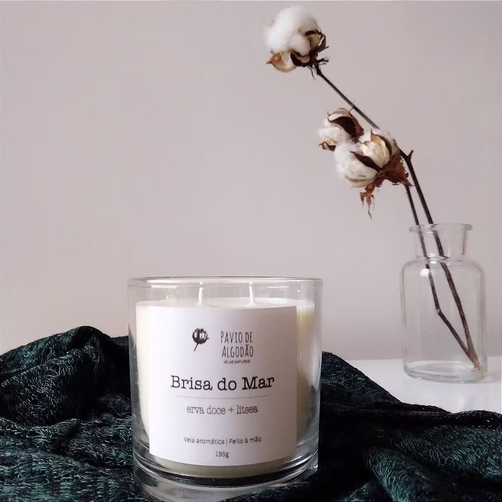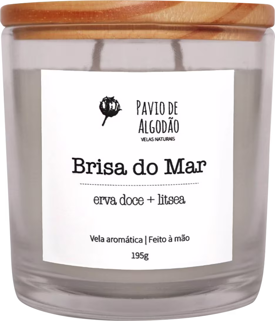 Com dois pavios de algodão e tampa de madeira.