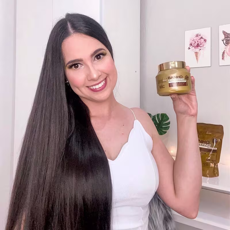 DescriçãoO Shampoo Banho de Verniz realiza uma limpeza suave nos fios e no couro cabeludo, eliminando o excesso de oleosidade. Rico em Queratina Hidrolisada, Óleo de Coco, D’Pantenol e Vitamina E, hidrata os fios devolvendo a vitalidade e o brilho.A Máscara Banho de Verniz chega para tratar a porosidade e a opacidade dos fios, realizando a nutrição e hidratação nas áreas mais internas do fio. Isso é possível devido a sua fórmula que conta com ativos como Óleo de Coco, D’Pantenol, Phytoqueratina e Aminoácidos. Dessa forma, seus cabelos ficarão macios, alinhados, fortalecidos, com brilho intenso e livres do frizz.O Vinagre Capilar de Maçã 300ml age nos fios como uma selagem capilar. Recupera cabelos danificados, restaura o pH, deixa os fios hidratados e macios. Por ser um produto com pH baixo, sela as cutículas, tratando a porosidade e mantendo hidratados por muito mais tempo, sem pontas duplas e sem frizz.
