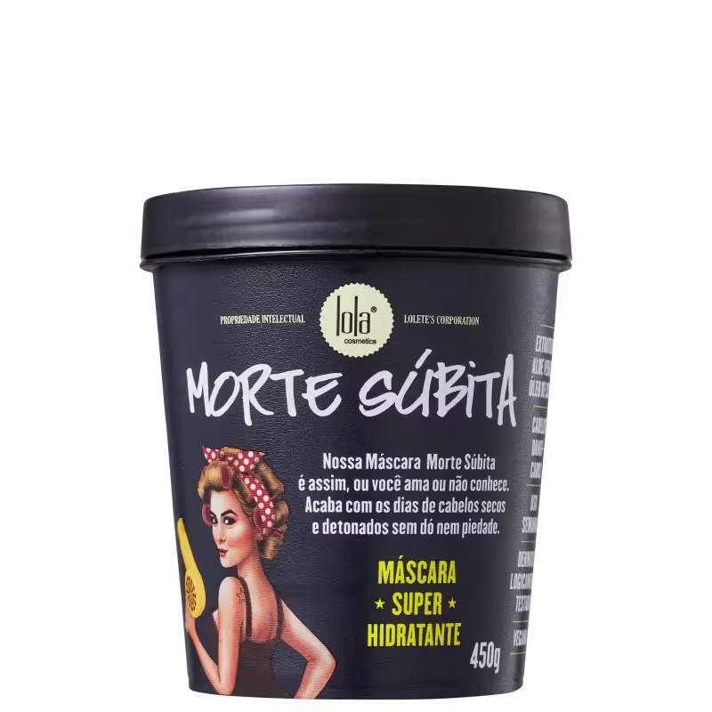 A Máscara Morte Súbita, de Lola Cosmetics, conta com ingredientes naturais que fortalecem a estrutura dos fios contra a quebra e protegem os cabelos dos danos causados pelo calor e exposição aos raios ultravioletas. O creme tem nutrientes que resgatam a hidratação natural da fibra capilar, o brilho e a suavidade dos fios.