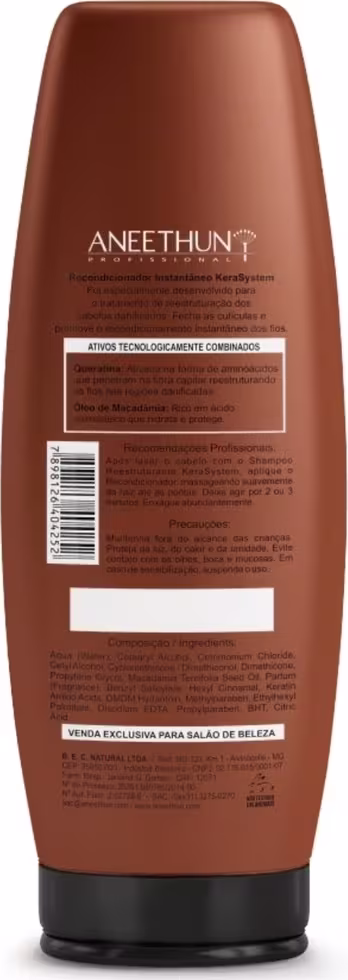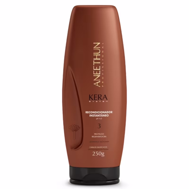 Aneethun Kera Máscara Condicionante é um tratamento 2 em 1 que funciona como máscara reparadora e condicionador ao mesmo tempo. Ajuda na finalização do tratamento de reestruturação, hidrata e proporciona fios mais macios. É recomendado para cabelos danificados, que passaram ou não pelo processo de cauterização dos fios. Aneethun Kera Máscara Condicionante possui em sua fórmula a Queratina hidrolisada, Óleo de macadâmia e Vitamina E que fecha as cutículas, condiciona, recupera os danos, ajuda na reparação, hidrata instantaneamente, e deixa os cabelos mais macios e sedosos.Pode ser utilizado como máscara para o tratamento quinzenal ou como condicionador para a hidratação diária.
