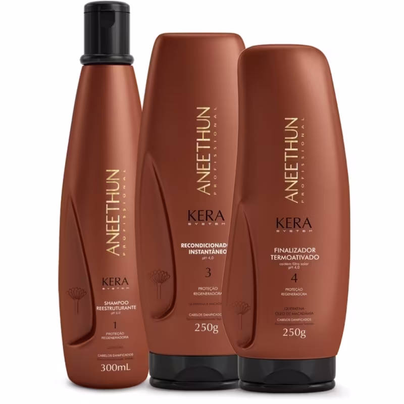 Desenvolvido especialmente para cabelos danificados e quebradiços, o Aneethun Kera Shampoo Hidratante limpa sem agredir os cabelos e o couro cabeludo, além de promover saúde aos fios, dando leveza e vitalidade. É o primeiro passo para o tratamento regenerador. Possuí em sua poderosa fórmula Queratina ativada na forma de aminoácidos, que penetra na fibra capilar reestruturando os fios nas regiões danificadas Óleo de Macadâmia, rico em ácido palmitoleico, que hidrata e protege os fios. E ainda Vitamina E, que possui ação antioxidante, removendo as impurezas da fibra capilar como óleos, cloro, agentes poluentes e resíduos de produtos químicos.