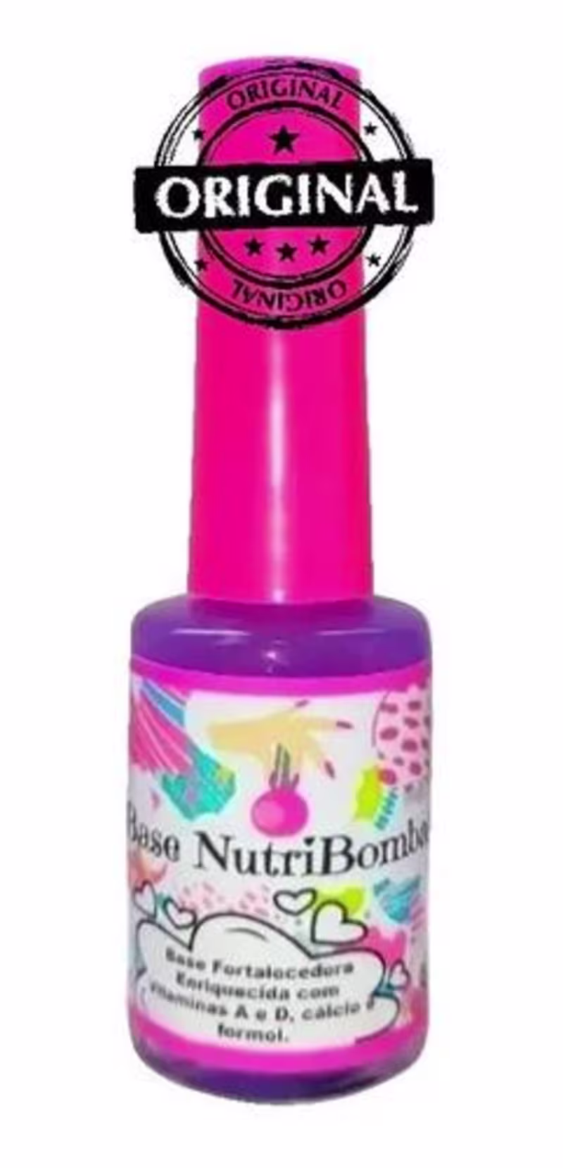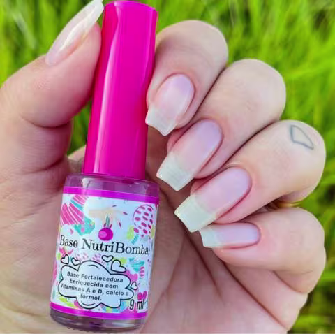 A Base NutriBomba é uma Base Fortalecedora ENRIQUECIDA COM VITAMINAS A E D CÁLCIO E FORMOL. Recomendada para quem tem unhas fracas, finas que descamam e não cresce!!!
