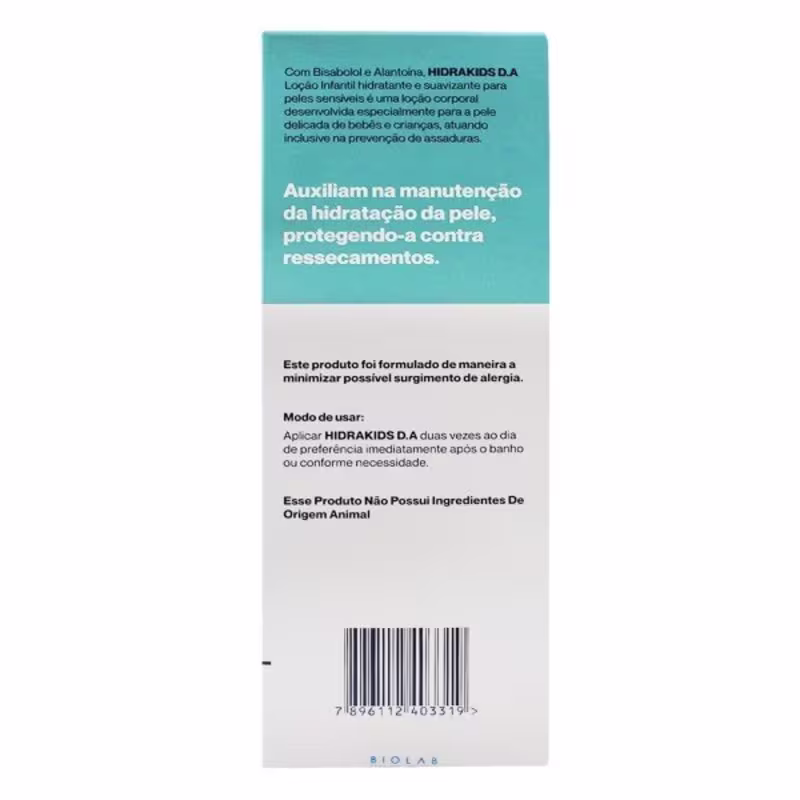 Para que serve: A composição de HIDRA KIDS oferece ação calmante e anti-irritante da pele. Reduz a 49% da vermelhidão em 2 dias. Alívio comprovado para todos os tipos de pele sensível. Componente Vegano.