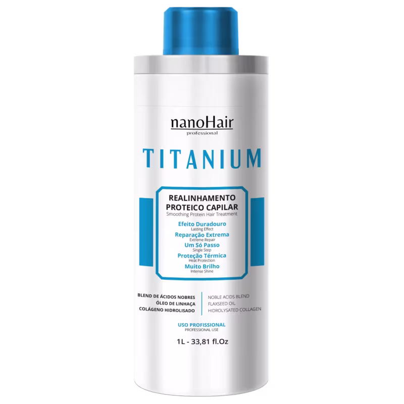 - A Escova Titanium conta com óleo de linhaça, óleo de uva, blend de proteínas e ácidos, colágeno hidrolisado, entre outros ingredientes nobres que agem na parte mais intima do fio, realinhando e reparando ao extremo, e também protegendo das altas temperaturas da prancha. Proporcionando assim, uma nova vida ao cabelo, transformando-o em um fio saudável, liso e com brilho intenso.